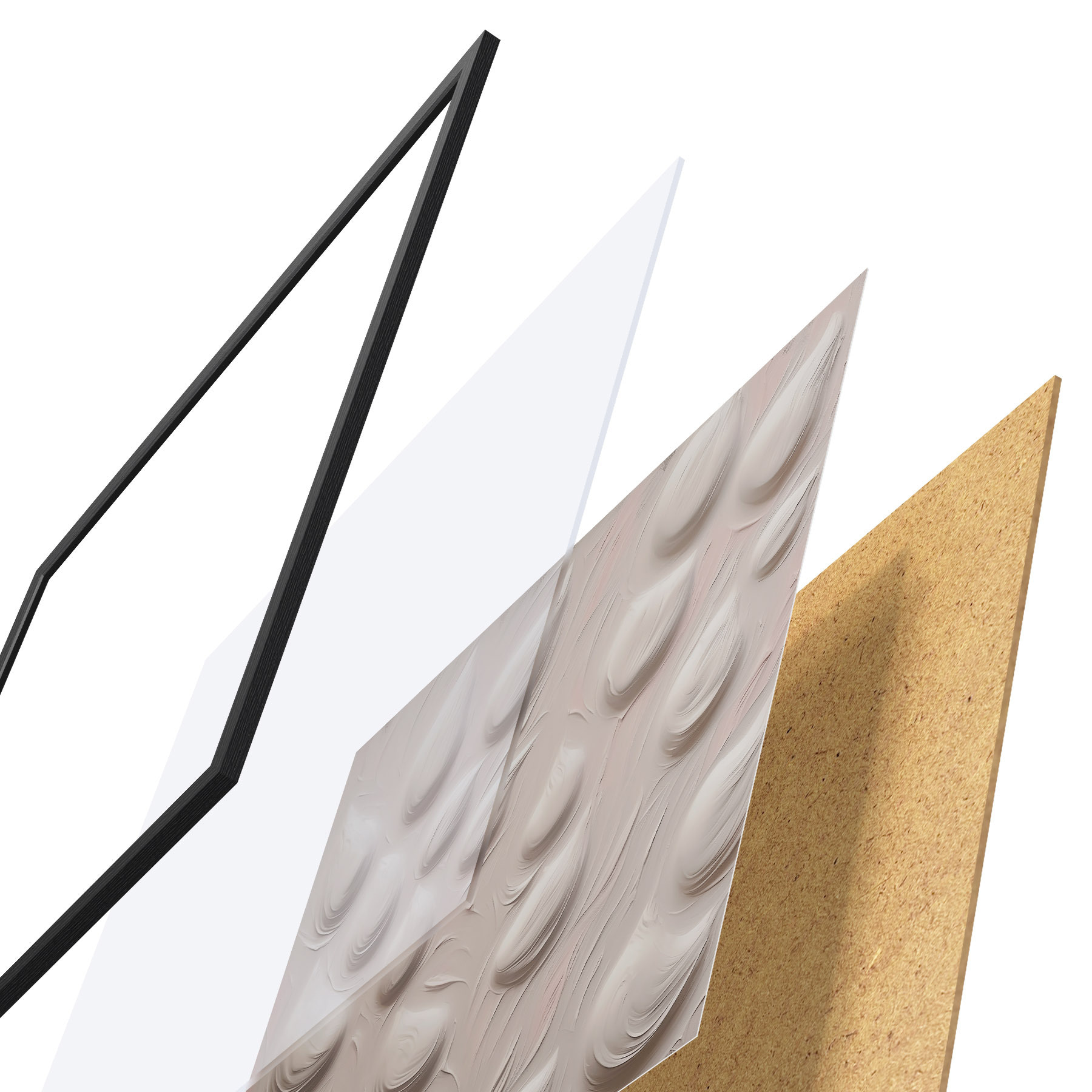 Plakāts sastāv no rāmja, pleksstikla, iespiestā attēla un skaidu plātnes pamatnes. Plakātu var uzreiz piekarināt pie sienas, pateicoties aizmugurē esošajiem stiprinājumiem.