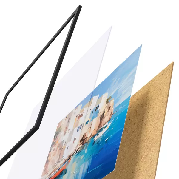 Plakāts sastāv no rāmja, pleksstikla, iespiestā attēla un skaidu plātnes pamatnes. Plakātu var uzreiz piekarināt pie sienas, pateicoties aizmugurē esošajiem stiprinājumiem.