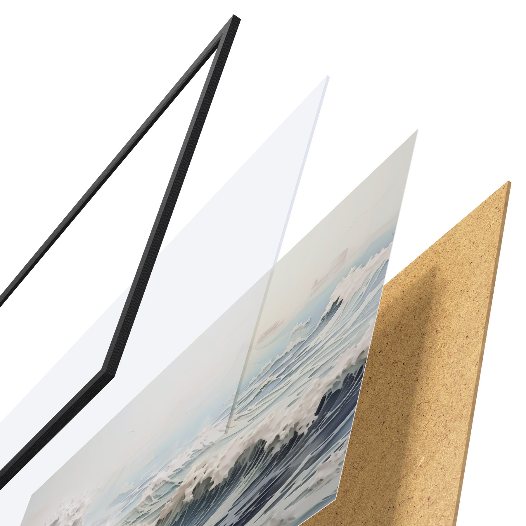 Plakāts sastāv no rāmja, pleksstikla, iespiestā attēla un skaidu plātnes pamatnes. Plakātu var uzreiz piekarināt pie sienas, pateicoties aizmugurē esošajiem stiprinājumiem.