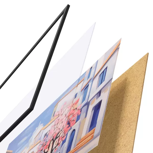 Plakāts sastāv no rāmja, pleksstikla, iespiestā attēla un skaidu plātnes pamatnes. Plakātu var uzreiz piekarināt pie sienas, pateicoties aizmugurē esošajiem stiprinājumiem.