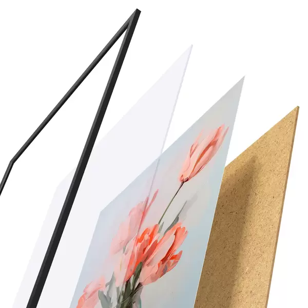 Plakāts sastāv no rāmja, pleksstikla, iespiestā attēla un skaidu plātnes pamatnes. Plakātu var uzreiz piekarināt pie sienas, pateicoties aizmugurē esošajiem stiprinājumiem.