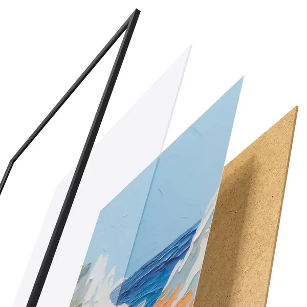 Plakāts sastāv no rāmja, pleksstikla, iespiestā attēla un skaidu plātnes pamatnes. Plakātu var uzreiz piekarināt pie sienas, pateicoties aizmugurē esošajiem stiprinājumiem.