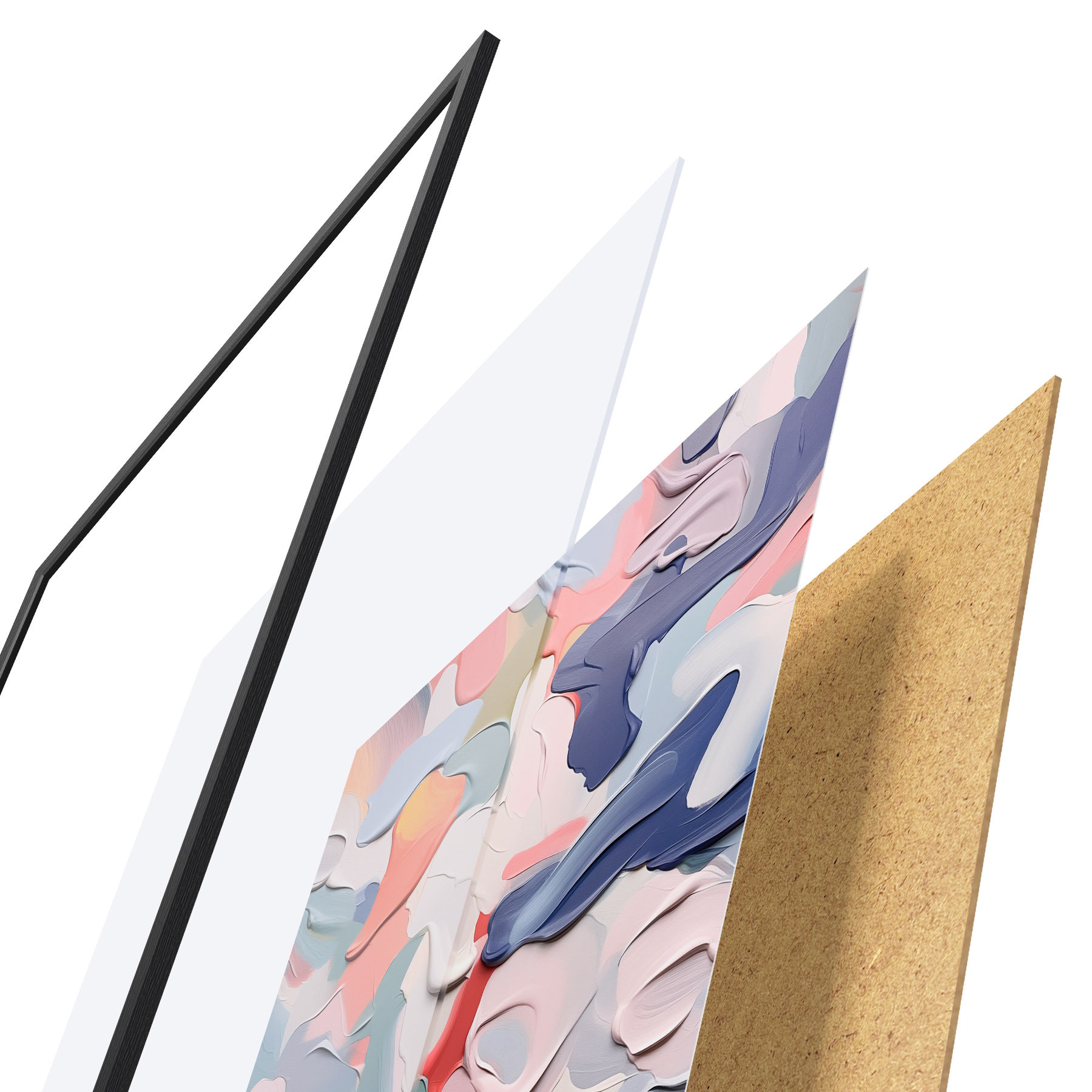 Plakāts sastāv no rāmja, pleksstikla, iespiestā attēla un skaidu plātnes pamatnes. Plakātu var uzreiz piekarināt pie sienas, pateicoties aizmugurē esošajiem stiprinājumiem.