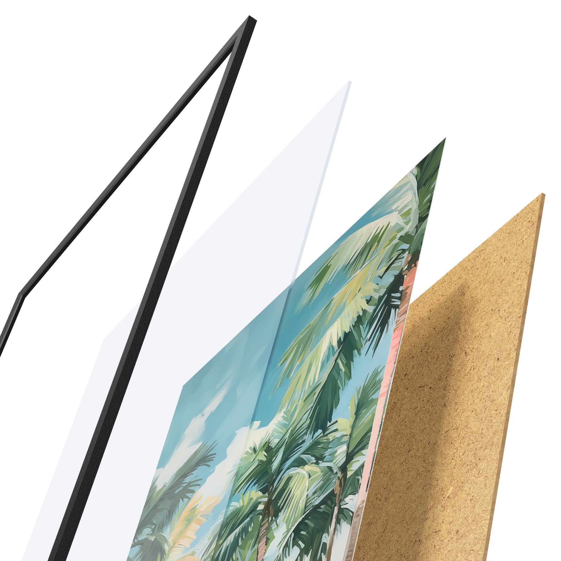 Plakāts sastāv no rāmja, pleksstikla, iespiestā attēla un skaidu plātnes pamatnes. Plakātu var uzreiz piekarināt pie sienas, pateicoties aizmugurē esošajiem stiprinājumiem.