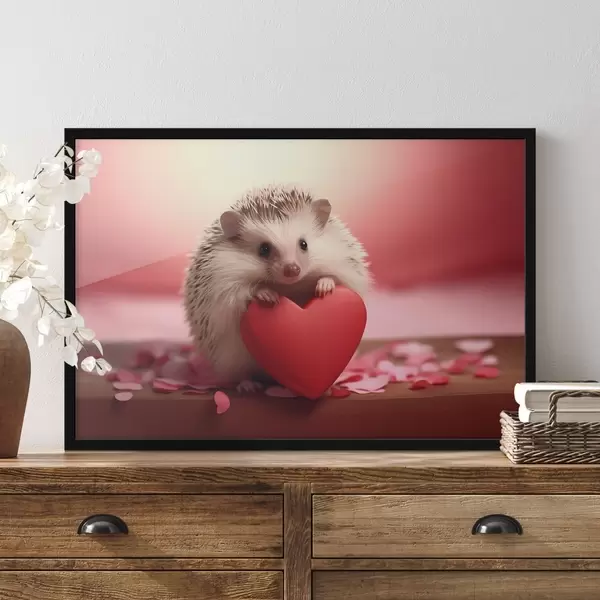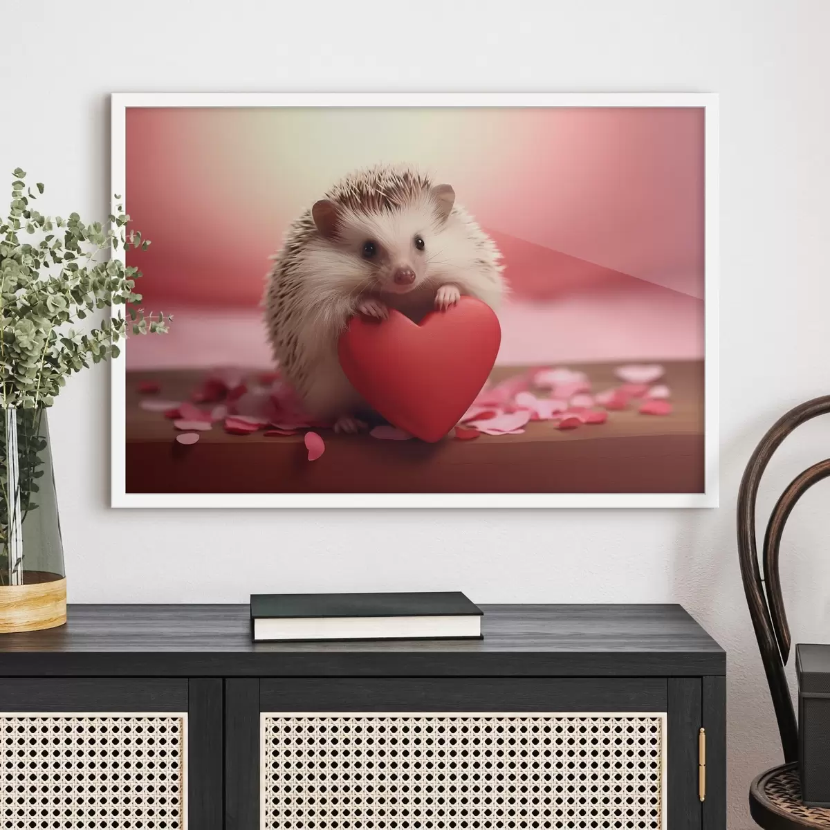 Plakāts Mazais ezītis, kas tur sirdi Nr f42867