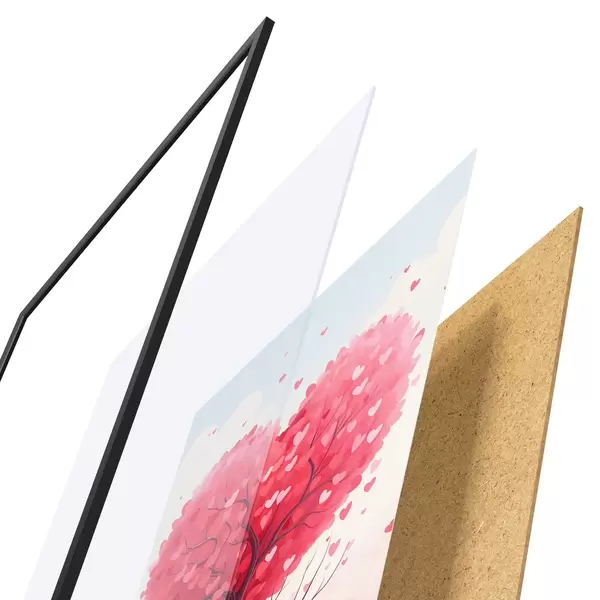 Plakāts sastāv no rāmja, pleksstikla, iespiestā attēla un skaidu plātnes pamatnes. Plakātu var uzreiz piekarināt pie sienas, pateicoties aizmugurē esošajiem stiprinājumiem.