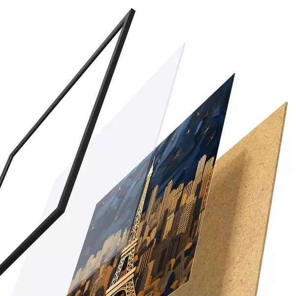 Plakāts sastāv no rāmja, pleksstikla, iespiestā attēla un skaidu plātnes pamatnes. Plakātu var uzreiz piekarināt pie sienas, pateicoties aizmugurē esošajiem stiprinājumiem.