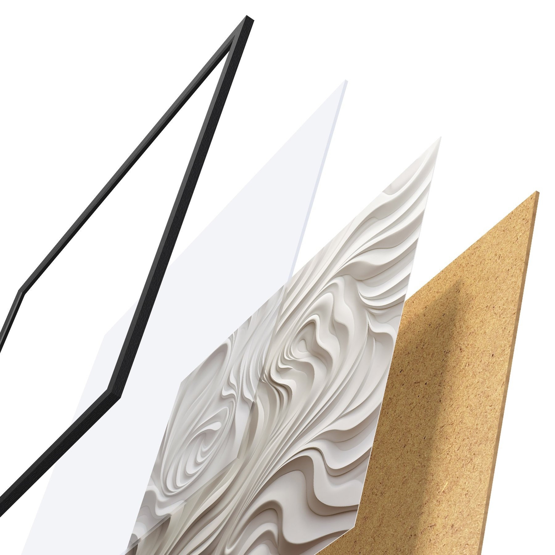 Plakāts sastāv no rāmja, pleksstikla, iespiestā attēla un skaidu plātnes pamatnes. Plakātu var uzreiz piekarināt pie sienas, pateicoties aizmugurē esošajiem stiprinājumiem.