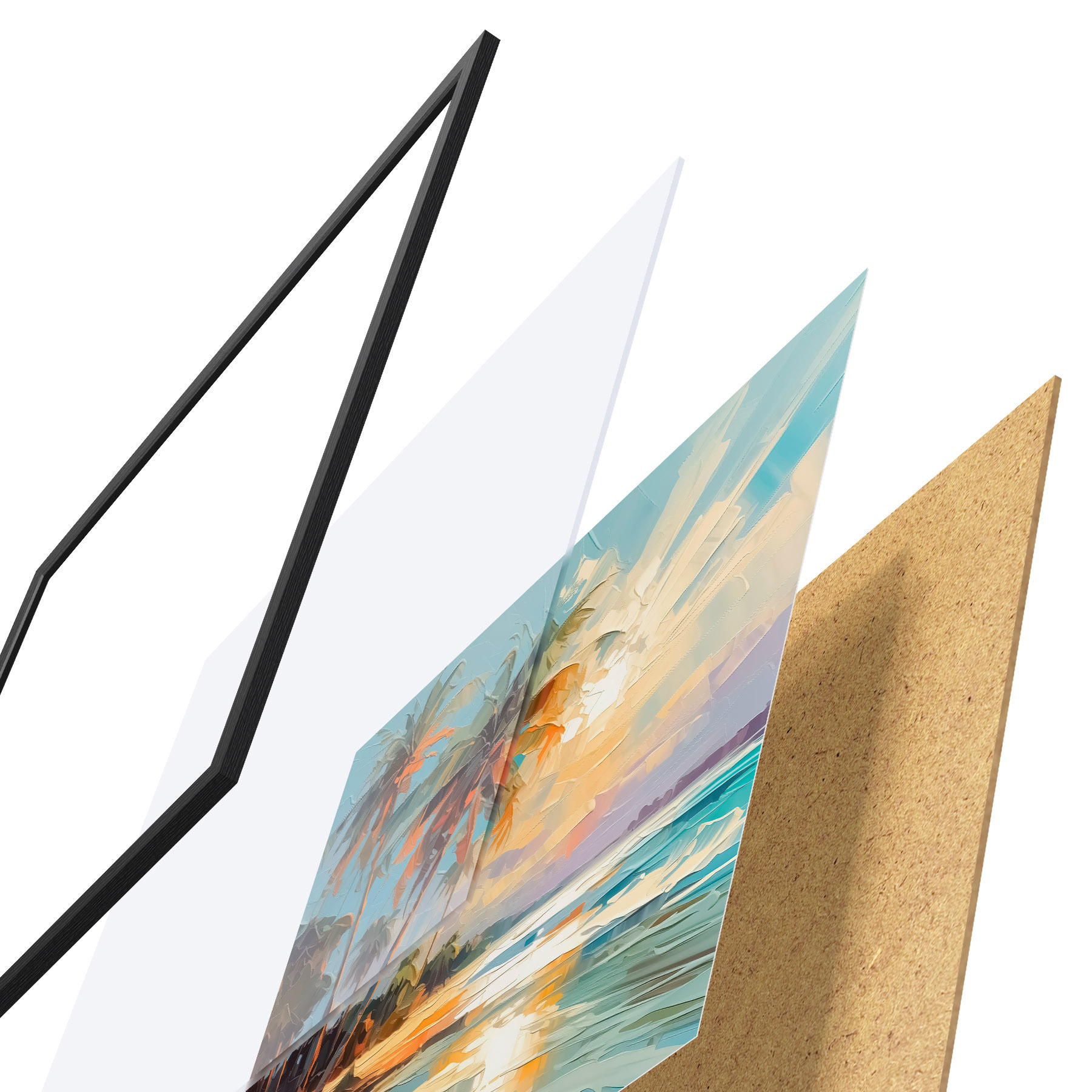 Plakāts sastāv no rāmja, pleksstikla, iespiestā attēla un skaidu plātnes pamatnes. Plakātu var uzreiz piekarināt pie sienas, pateicoties aizmugurē esošajiem stiprinājumiem.