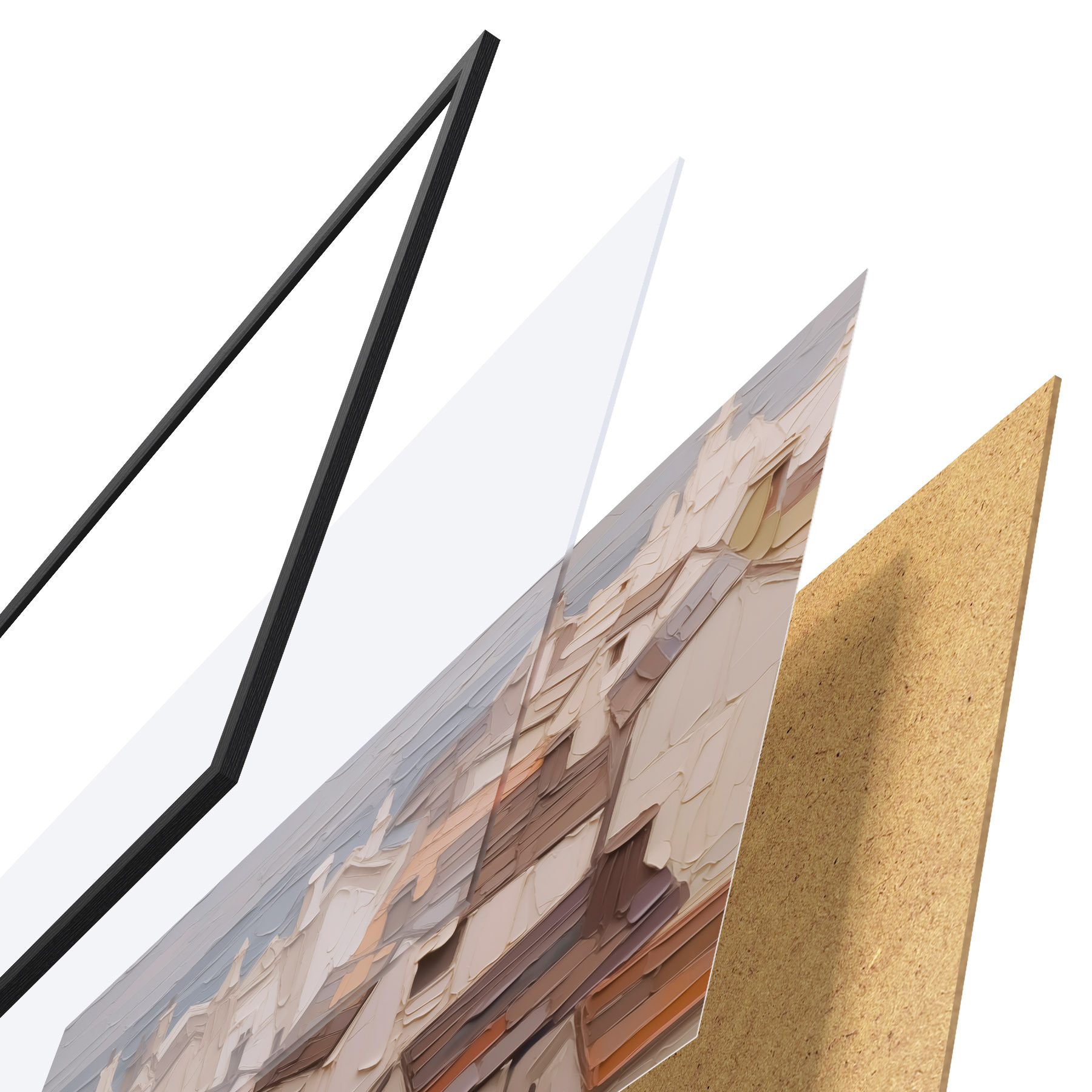 Plakāts sastāv no rāmja, pleksstikla, iespiestā attēla un skaidu plātnes pamatnes. Plakātu var uzreiz piekarināt pie sienas, pateicoties aizmugurē esošajiem stiprinājumiem.