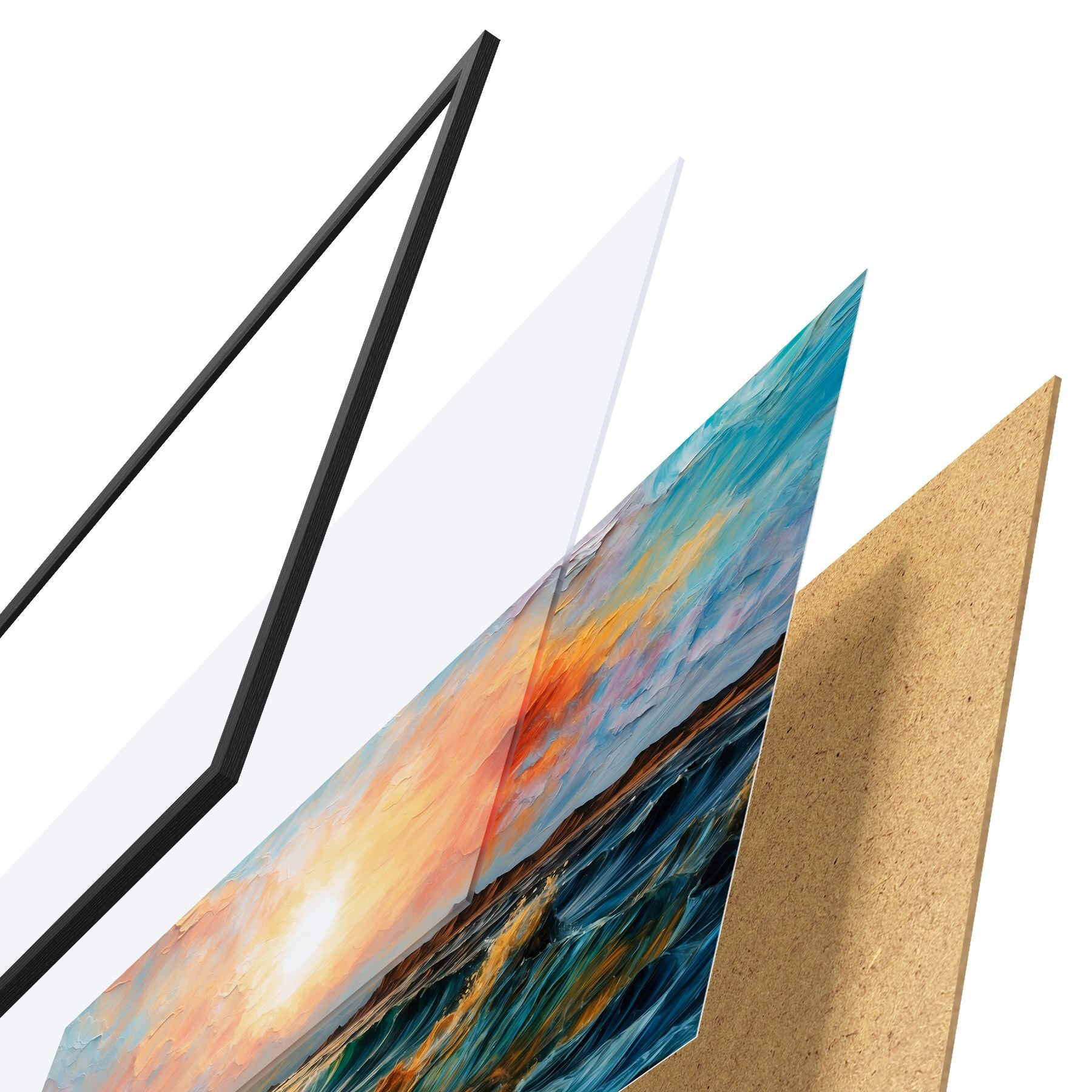 Plakāts sastāv no rāmja, pleksstikla, iespiestā attēla un skaidu plātnes pamatnes. Plakātu var uzreiz piekarināt pie sienas, pateicoties aizmugurē esošajiem stiprinājumiem.