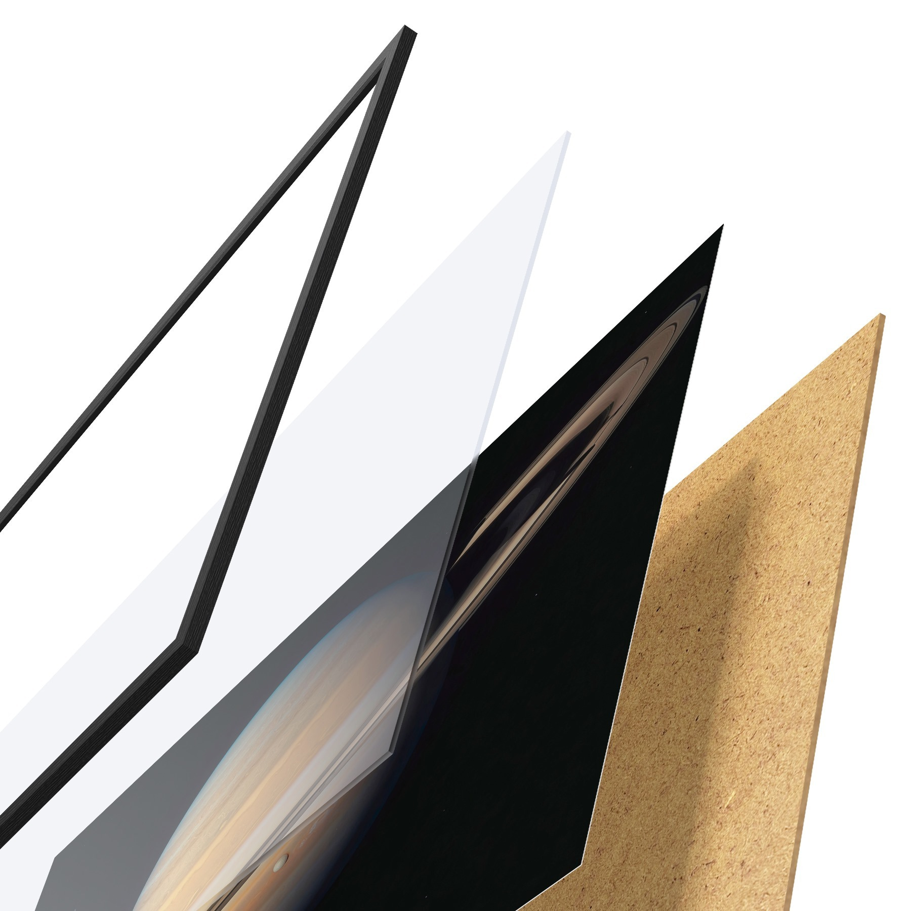 Plakāts sastāv no rāmja, pleksstikla, iespiestā attēla un skaidu plātnes pamatnes. Plakātu var uzreiz piekarināt pie sienas, pateicoties aizmugurē esošajiem stiprinājumiem.