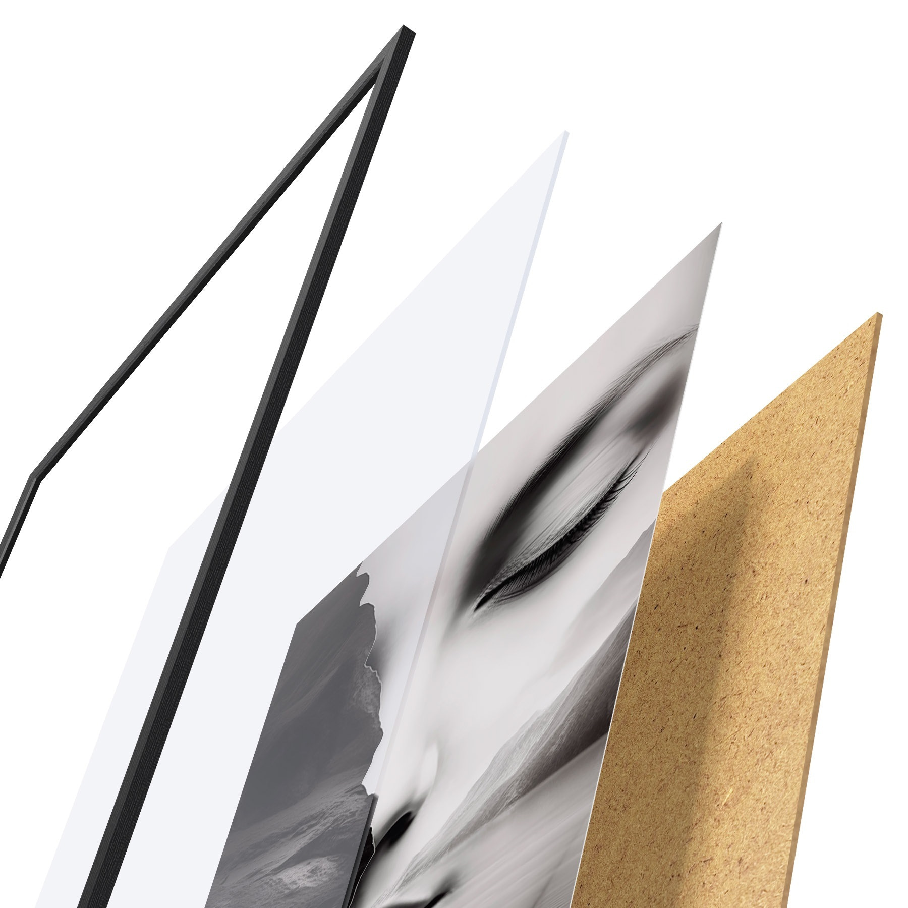 Plakāts sastāv no rāmja, pleksstikla, iespiestā attēla un skaidu plātnes pamatnes. Plakātu var uzreiz piekarināt pie sienas, pateicoties aizmugurē esošajiem stiprinājumiem.