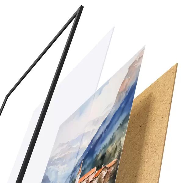 Plakāts sastāv no rāmja, pleksstikla, iespiestā attēla un skaidu plātnes pamatnes. Plakātu var uzreiz piekarināt pie sienas, pateicoties aizmugurē esošajiem stiprinājumiem.