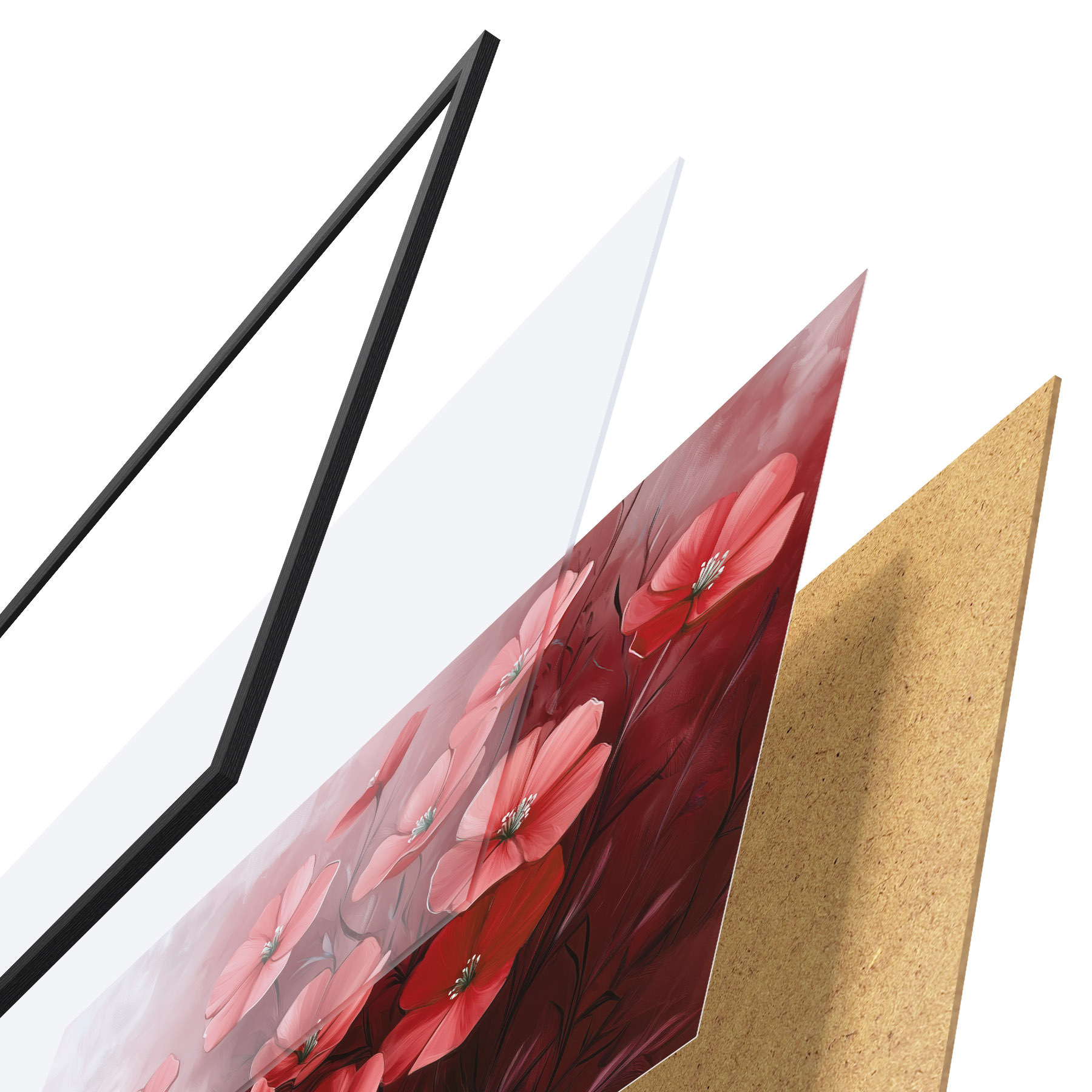 Plakāts sastāv no rāmja, pleksstikla, iespiestā attēla un skaidu plātnes pamatnes. Plakātu var uzreiz piekarināt pie sienas, pateicoties aizmugurē esošajiem stiprinājumiem.