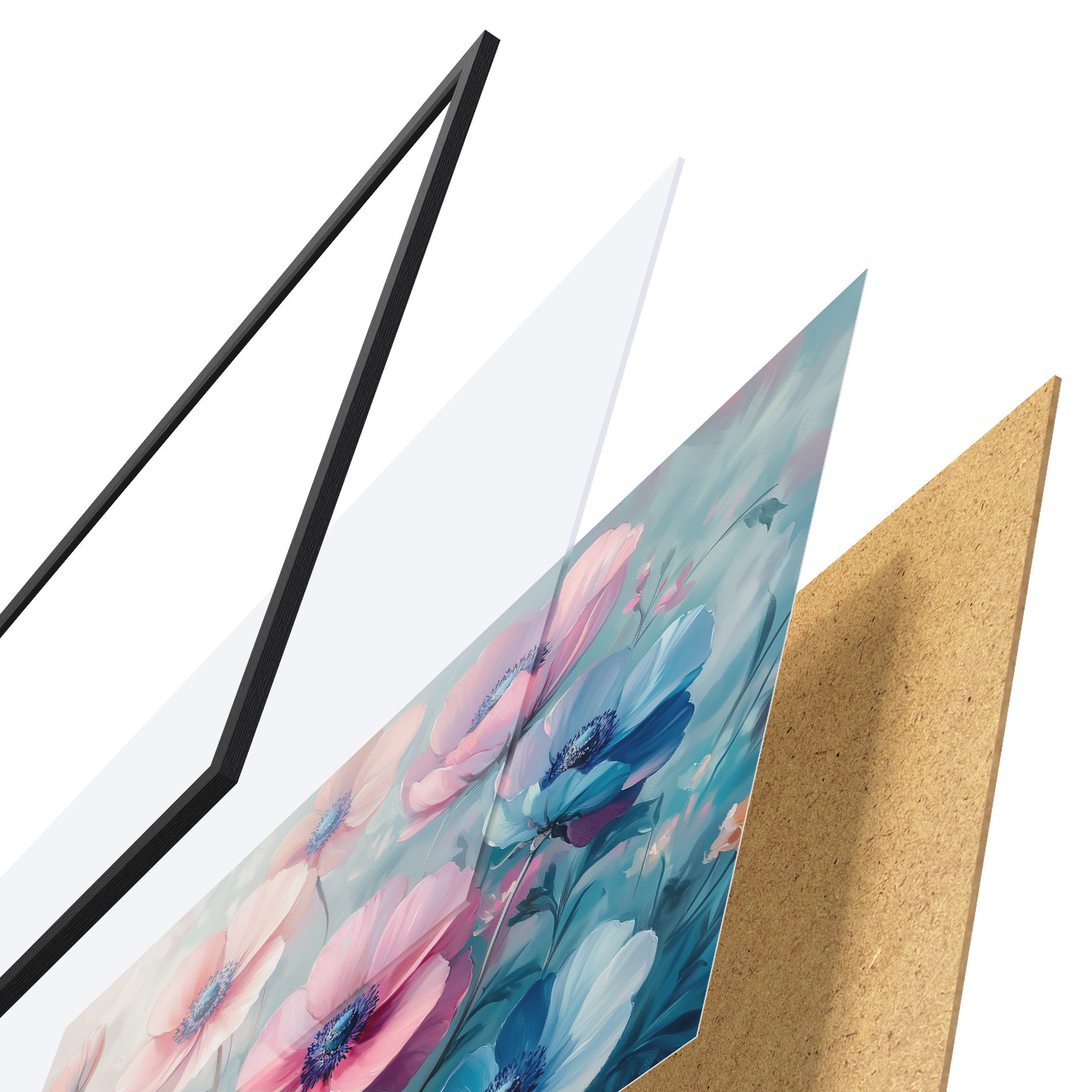 Plakāts sastāv no rāmja, pleksstikla, iespiestā attēla un skaidu plātnes pamatnes. Plakātu var uzreiz piekarināt pie sienas, pateicoties aizmugurē esošajiem stiprinājumiem.
