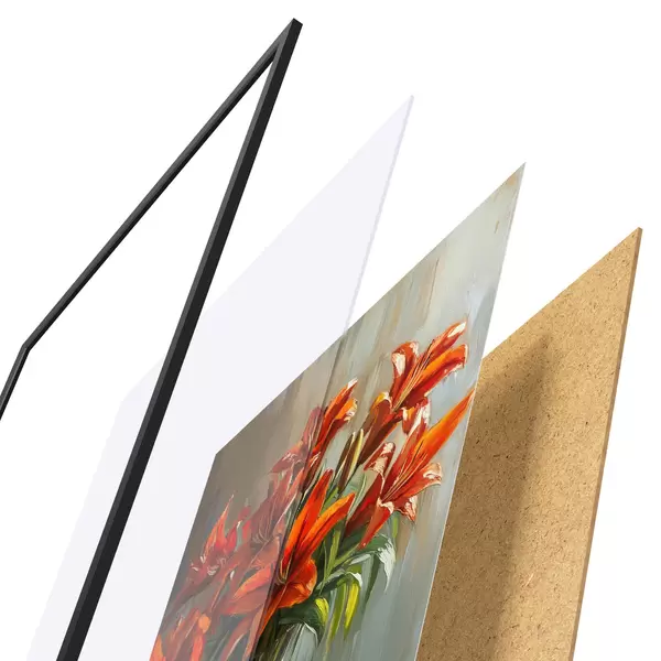 Plakāts sastāv no rāmja, pleksstikla, iespiestā attēla un skaidu plātnes pamatnes. Plakātu var uzreiz piekarināt pie sienas, pateicoties aizmugurē esošajiem stiprinājumiem.