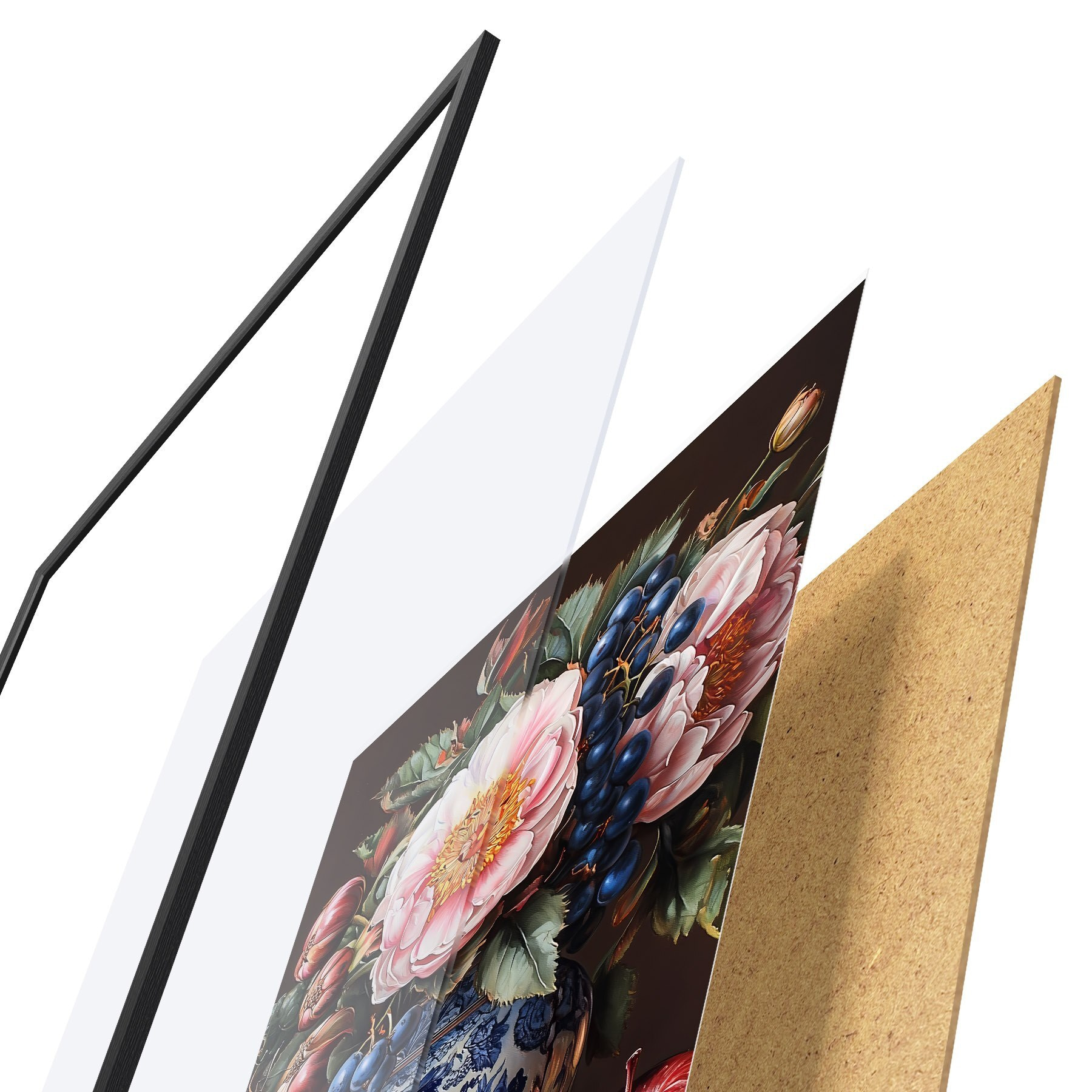 Plakāts sastāv no rāmja, pleksstikla, iespiestā attēla un skaidu plātnes pamatnes. Plakātu var uzreiz piekarināt pie sienas, pateicoties aizmugurē esošajiem stiprinājumiem.