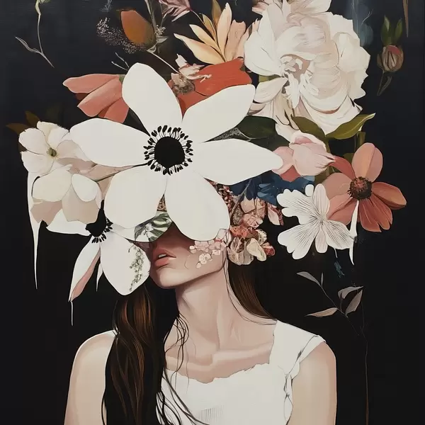 Plakāts Meitene ar ziediem uz sejas f42989