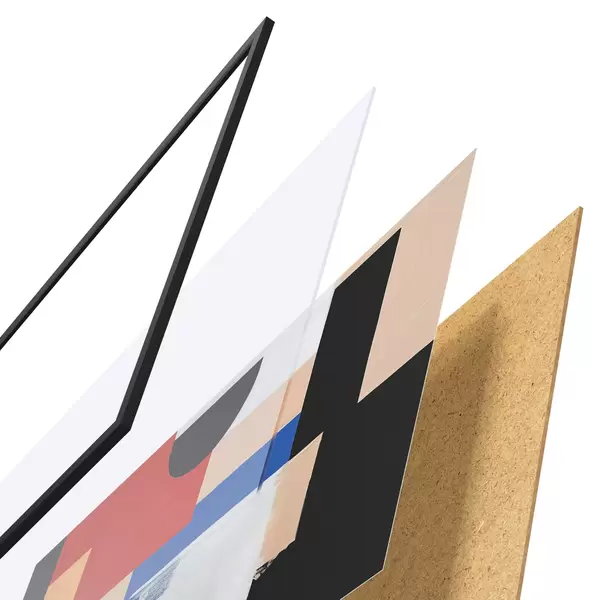 Plakāts sastāv no rāmja, pleksstikla, iespiestā attēla un skaidu plātnes pamatnes. Plakātu var uzreiz piekarināt pie sienas, pateicoties aizmugurē esošajiem stiprinājumiem.