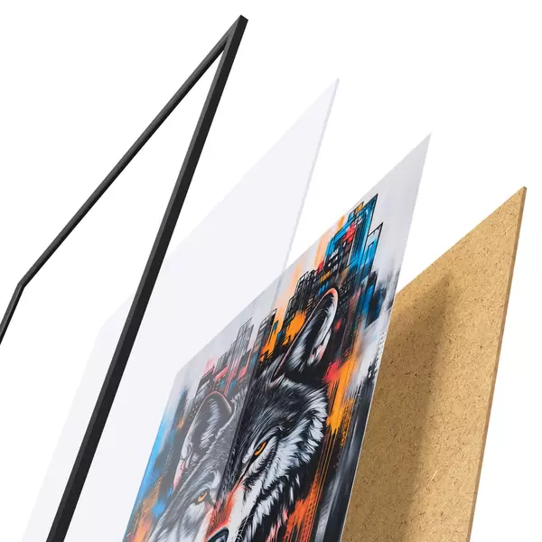Plakāts sastāv no rāmja, pleksstikla, iespiestā attēla un skaidu plātnes pamatnes. Plakātu var uzreiz piekarināt pie sienas, pateicoties aizmugurē esošajiem stiprinājumiem.