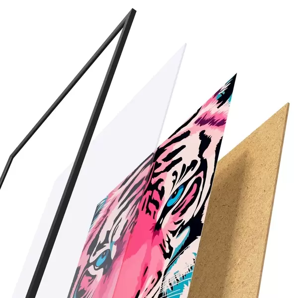 Plakāts sastāv no rāmja, pleksstikla, iespiestā attēla un skaidu plātnes pamatnes. Plakātu var uzreiz piekarināt pie sienas, pateicoties aizmugurē esošajiem stiprinājumiem.