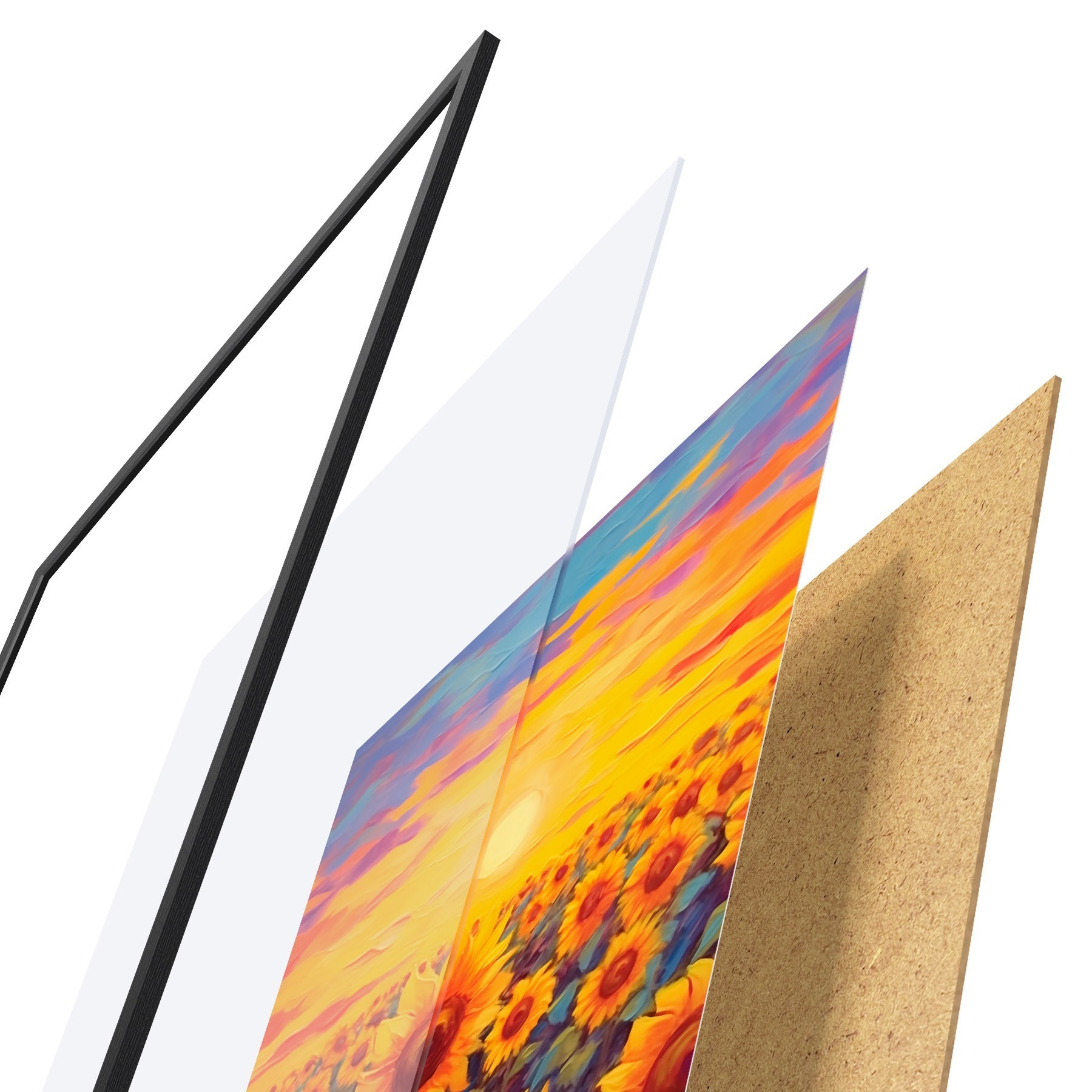 Plakāts sastāv no rāmja, pleksstikla, iespiestā attēla un skaidu plātnes pamatnes. Plakātu var uzreiz piekarināt pie sienas, pateicoties aizmugurē esošajiem stiprinājumiem.
