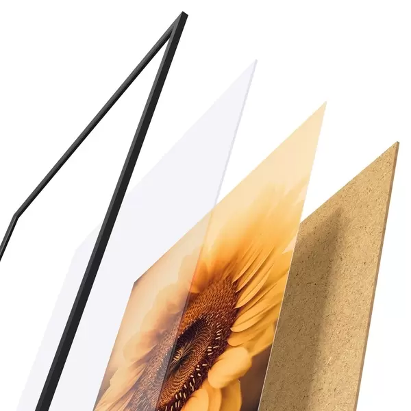 Plakāts sastāv no rāmja, pleksstikla, iespiestā attēla un skaidu plātnes pamatnes. Plakātu var uzreiz piekarināt pie sienas, pateicoties aizmugurē esošajiem stiprinājumiem.