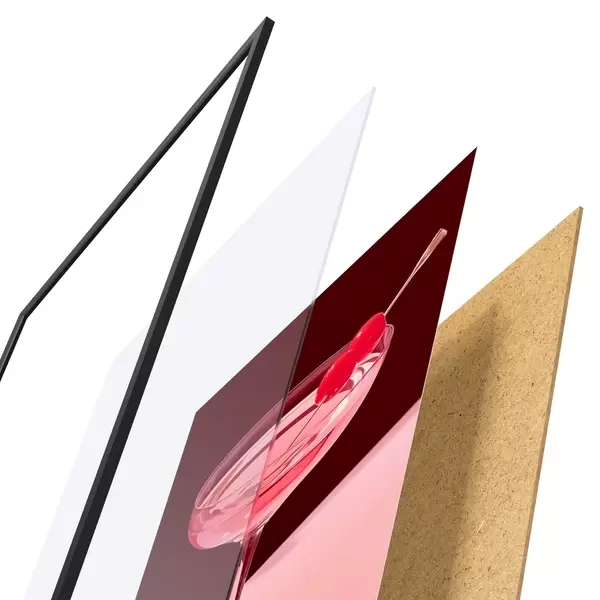 Plakāts sastāv no rāmja, pleksstikla, iespiestā attēla un skaidu plātnes pamatnes. Plakātu var uzreiz piekarināt pie sienas, pateicoties aizmugurē esošajiem stiprinājumiem.