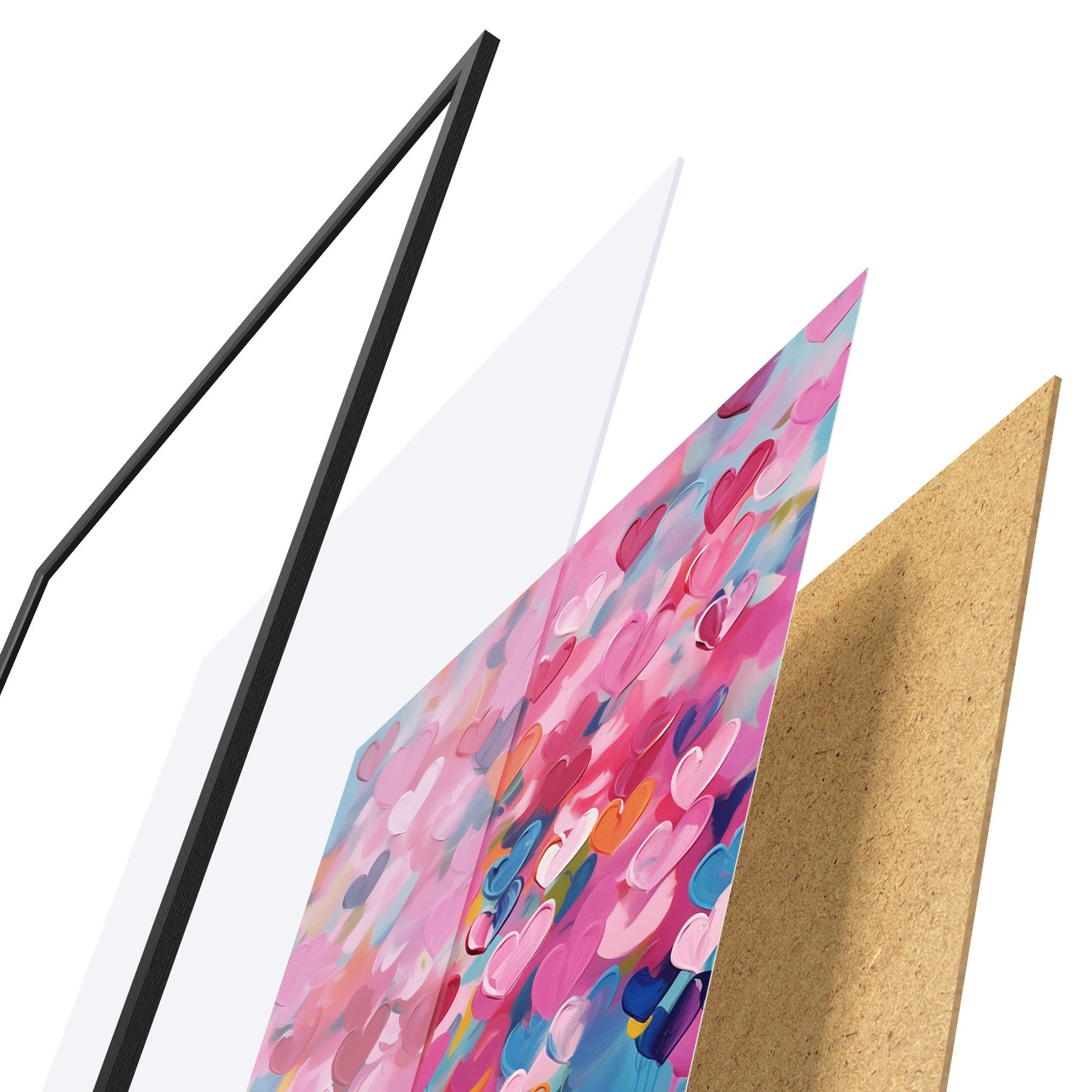 Plakāts sastāv no rāmja, pleksstikla, iespiestā attēla un skaidu plātnes pamatnes. Plakātu var uzreiz piekarināt pie sienas, pateicoties aizmugurē esošajiem stiprinājumiem.