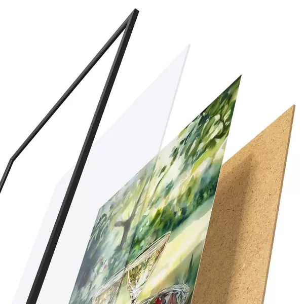 Plakāts sastāv no rāmja, pleksstikla, iespiestā attēla un skaidu plātnes pamatnes. Plakātu var uzreiz piekarināt pie sienas, pateicoties aizmugurē esošajiem stiprinājumiem.