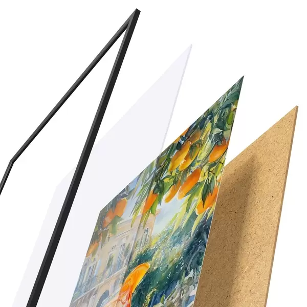 Plakāts sastāv no rāmja, pleksstikla, iespiestā attēla un skaidu plātnes pamatnes. Plakātu var uzreiz piekarināt pie sienas, pateicoties aizmugurē esošajiem stiprinājumiem.