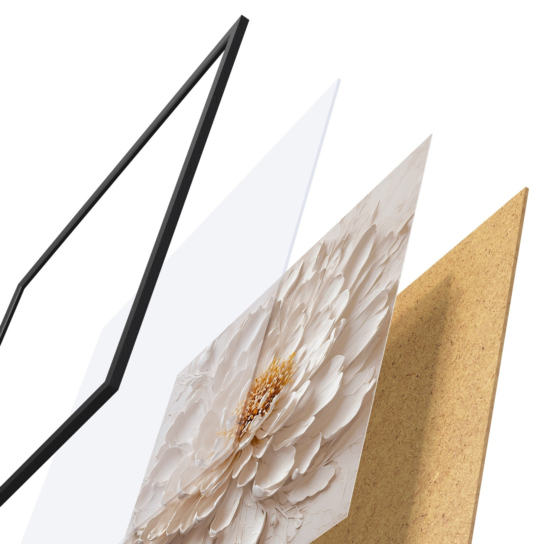 Plakāts sastāv no rāmja, pleksstikla, iespiestā attēla un skaidu plātnes pamatnes. Plakātu var uzreiz piekarināt pie sienas, pateicoties aizmugurē esošajiem stiprinājumiem.
