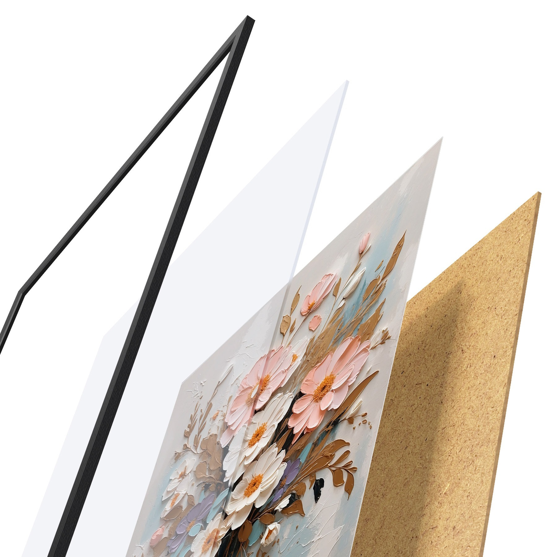 Plakāts sastāv no rāmja, pleksstikla, iespiestā attēla un skaidu plātnes pamatnes. Plakātu var uzreiz piekarināt pie sienas, pateicoties aizmugurē esošajiem stiprinājumiem.