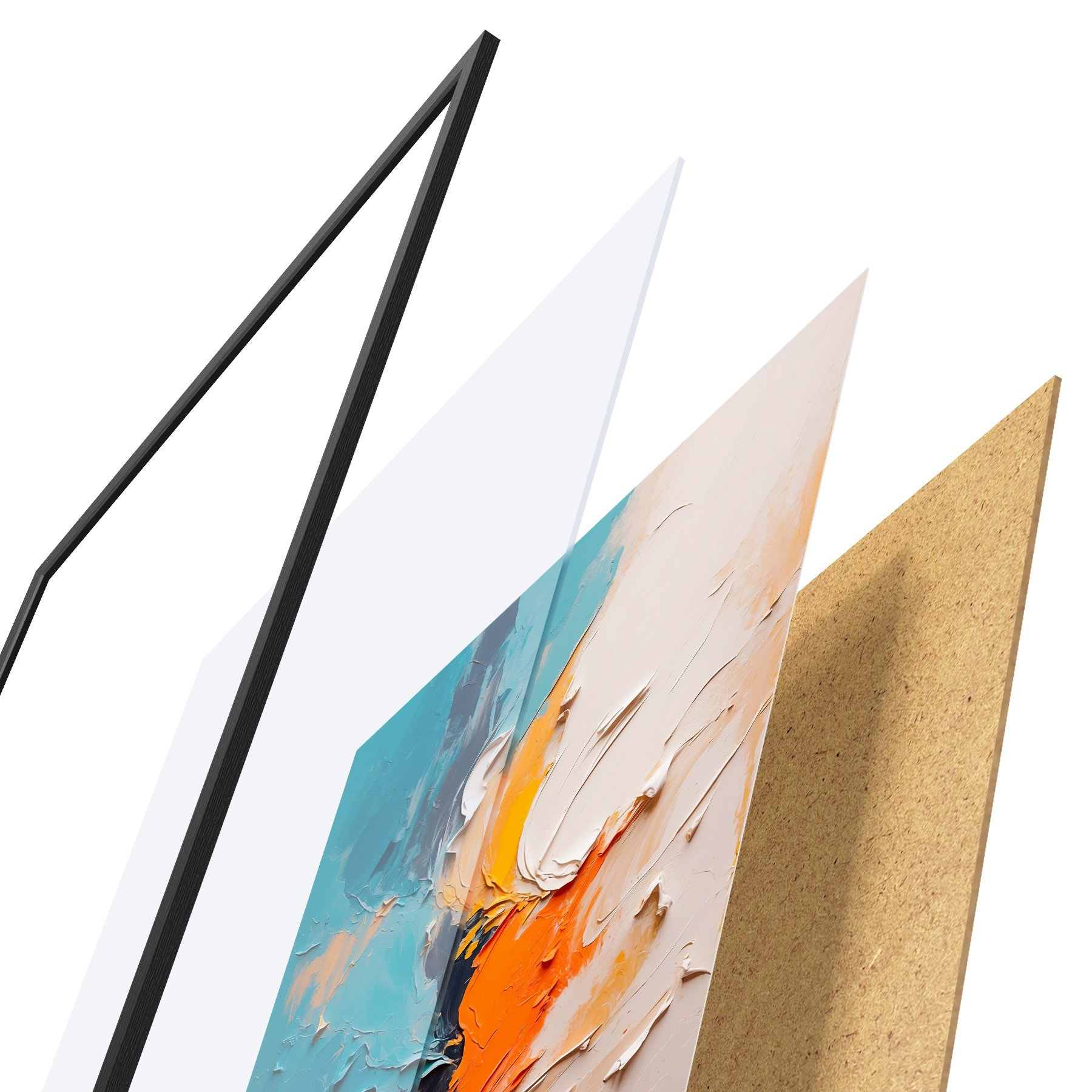 Plakāts sastāv no rāmja, pleksstikla, iespiestā attēla un skaidu plātnes pamatnes. Plakātu var uzreiz piekarināt pie sienas, pateicoties aizmugurē esošajiem stiprinājumiem.