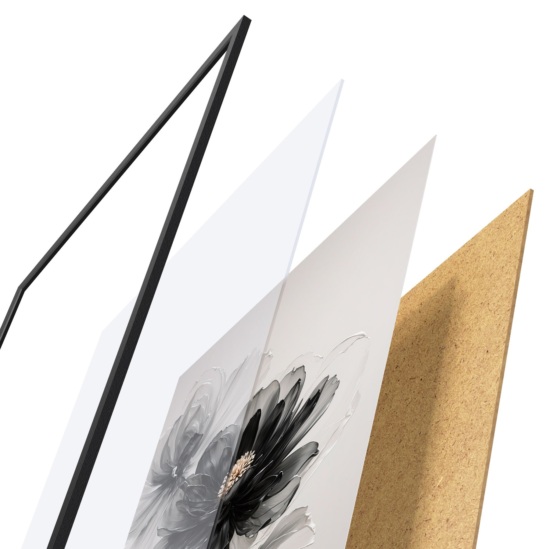 Plakāts sastāv no rāmja, pleksstikla, iespiestā attēla un skaidu plātnes pamatnes. Plakātu var uzreiz piekarināt pie sienas, pateicoties aizmugurē esošajiem stiprinājumiem.