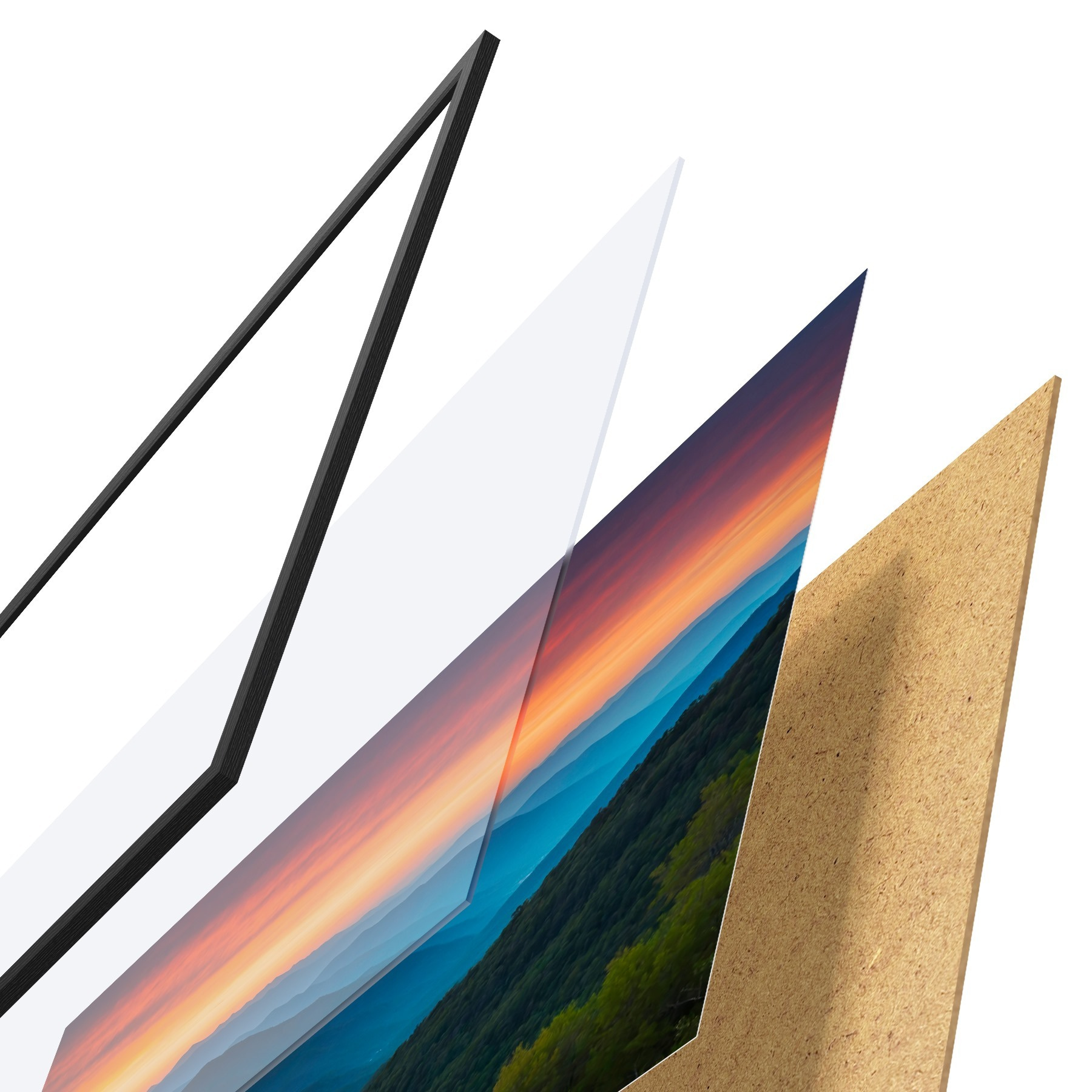 Plakāts sastāv no rāmja, pleksstikla, iespiestā attēla un skaidu plātnes pamatnes. Plakātu var uzreiz piekarināt pie sienas, pateicoties aizmugurē esošajiem stiprinājumiem.