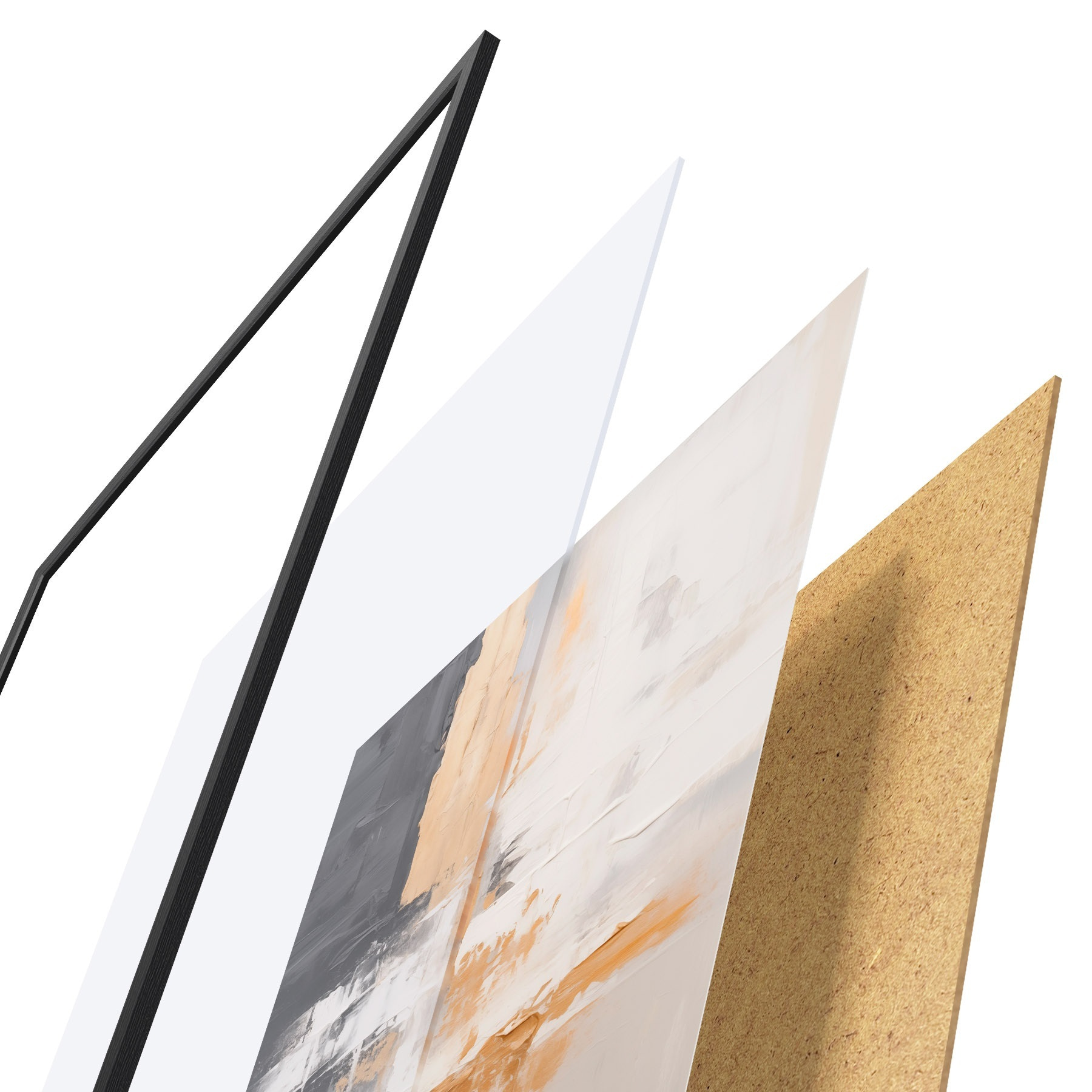 Plakāts sastāv no rāmja, pleksstikla, iespiestā attēla un skaidu plātnes pamatnes. Plakātu var uzreiz piekarināt pie sienas, pateicoties aizmugurē esošajiem stiprinājumiem.