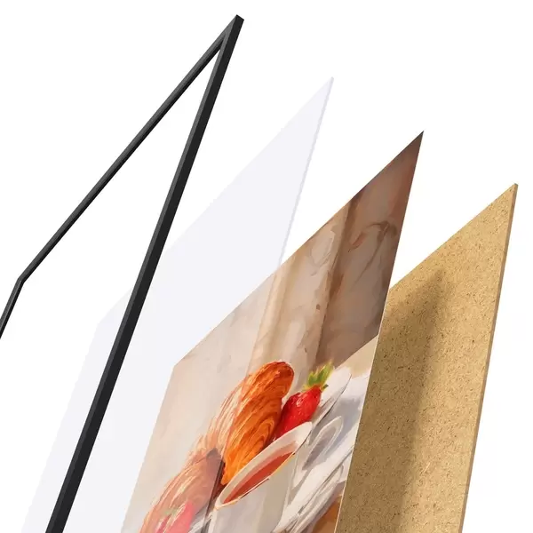 Plakāts sastāv no rāmja, pleksstikla, iespiestā attēla un skaidu plātnes pamatnes. Plakātu var uzreiz piekarināt pie sienas, pateicoties aizmugurē esošajiem stiprinājumiem.