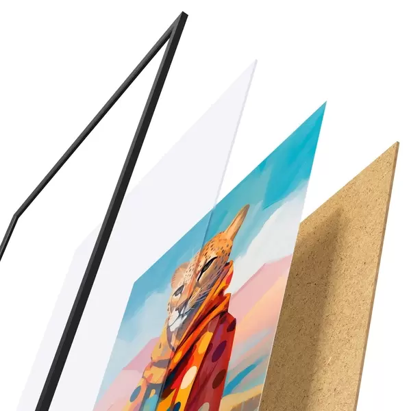 Plakāts sastāv no rāmja, pleksstikla, iespiestā attēla un skaidu plātnes pamatnes. Plakātu var uzreiz piekarināt pie sienas, pateicoties aizmugurē esošajiem stiprinājumiem.