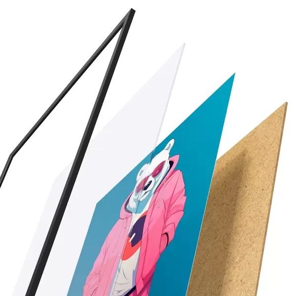 Plakāts sastāv no rāmja, pleksstikla, iespiestā attēla un skaidu plātnes pamatnes. Plakātu var uzreiz piekarināt pie sienas, pateicoties aizmugurē esošajiem stiprinājumiem.