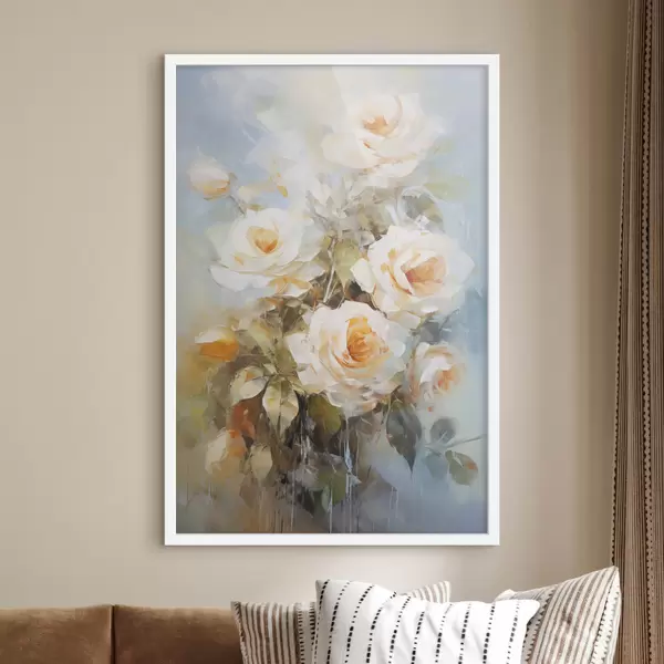 SākumlapaPlakātu katalogsPlakāti ziediPlakāts Baltas rozes ar oranžu krāsu uz maiga, gaiši zila fona, ar redzamiem otas triepieniem un glezniecisku stilu Nr f43175