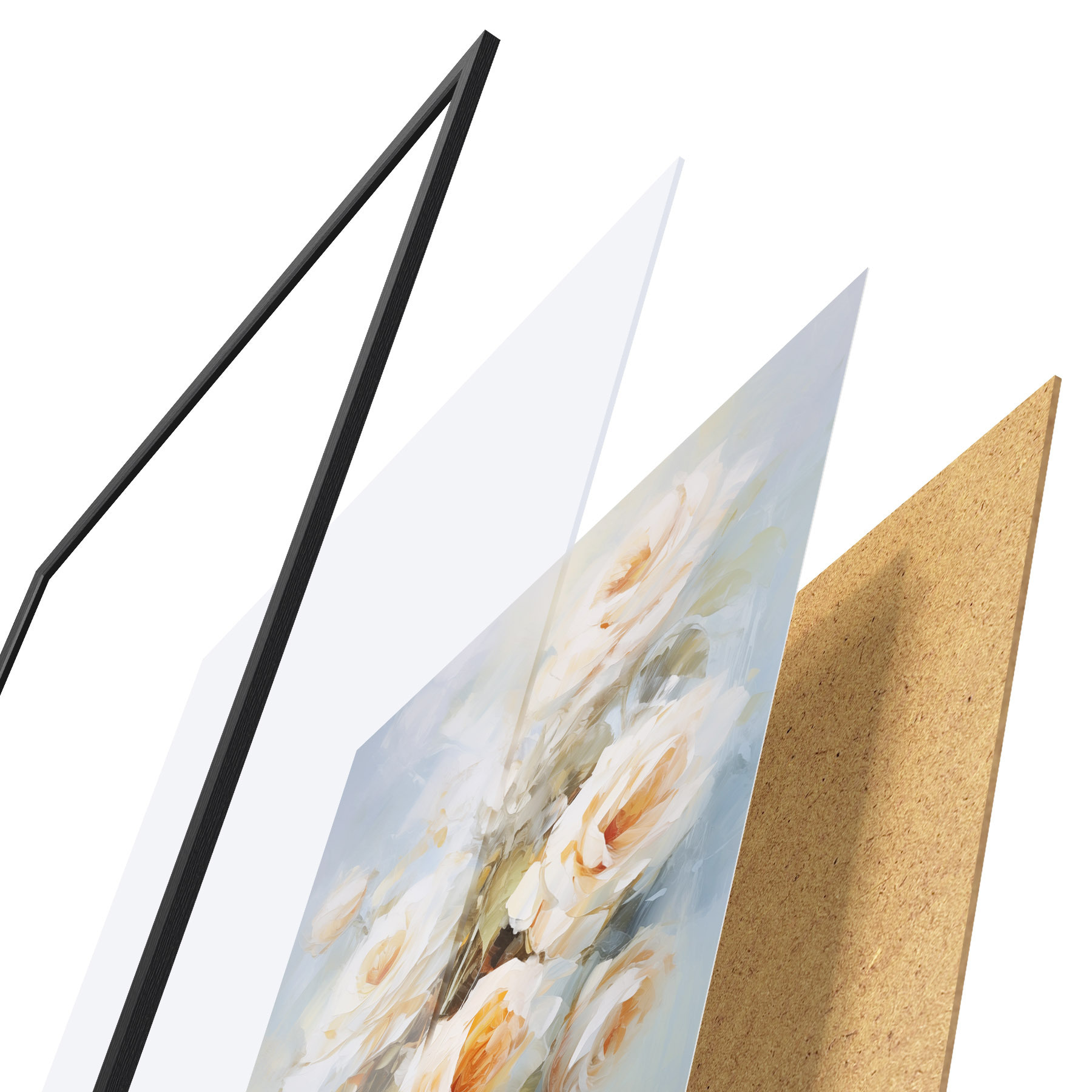 Plakāts sastāv no rāmja, pleksstikla, iespiestā attēla un skaidu plātnes pamatnes. Plakātu var uzreiz piekarināt pie sienas, pateicoties aizmugurē esošajiem stiprinājumiem.