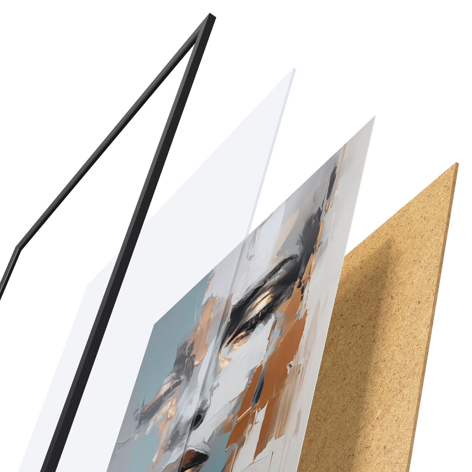Plakāts sastāv no rāmja, pleksstikla, iespiestā attēla un skaidu plātnes pamatnes. Plakātu var uzreiz piekarināt pie sienas, pateicoties aizmugurē esošajiem stiprinājumiem.