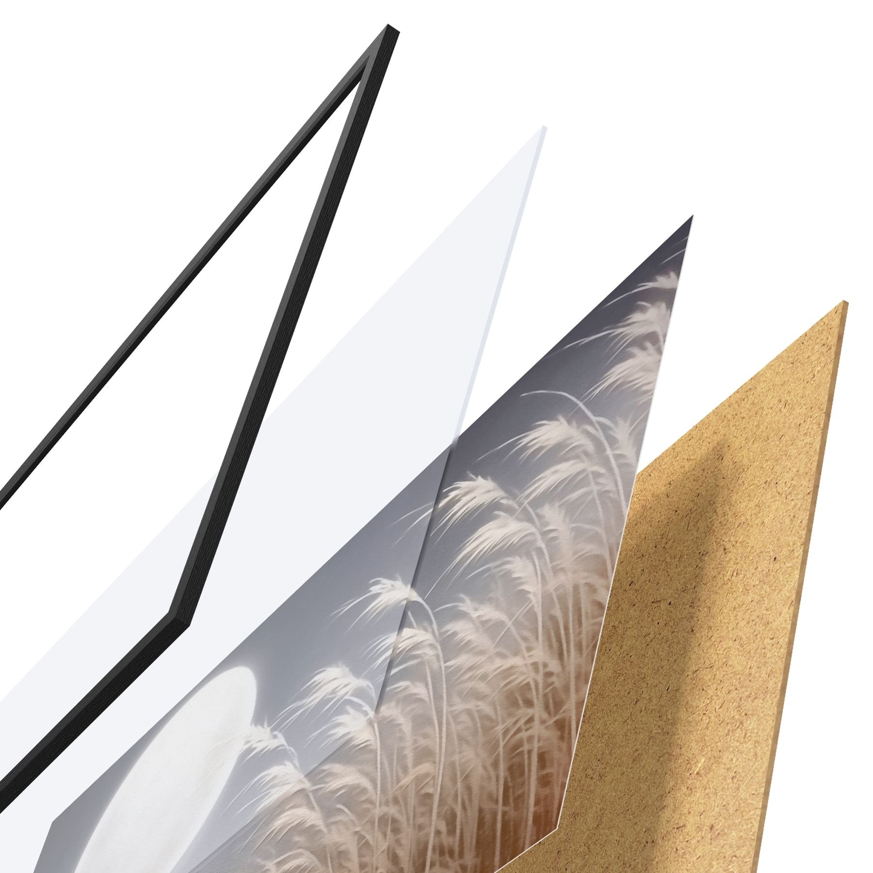 Plakāts sastāv no rāmja, pleksstikla, iespiestā attēla un skaidu plātnes pamatnes. Plakātu var uzreiz piekarināt pie sienas, pateicoties aizmugurē esošajiem stiprinājumiem.