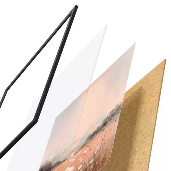 Plakāts sastāv no rāmja, pleksstikla, iespiestā attēla un skaidu plātnes pamatnes. Plakātu var uzreiz piekarināt pie sienas, pateicoties aizmugurē esošajiem stiprinājumiem.