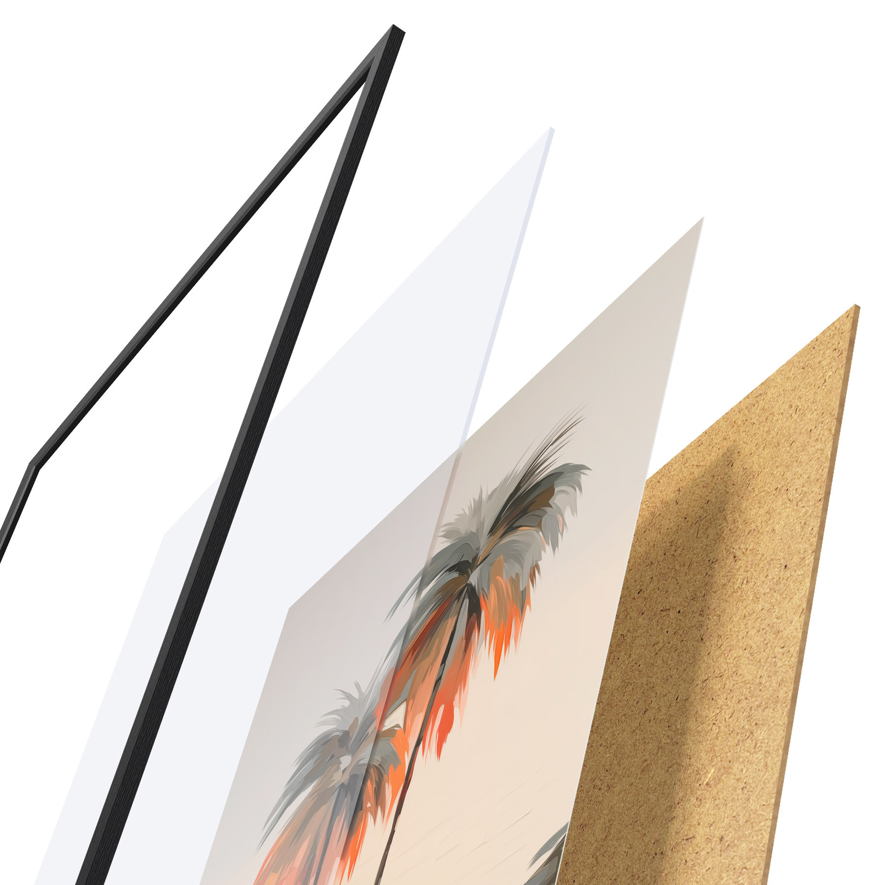 Plakāts sastāv no rāmja, pleksstikla, iespiestā attēla un skaidu plātnes pamatnes. Plakātu var uzreiz piekarināt pie sienas, pateicoties aizmugurē esošajiem stiprinājumiem.