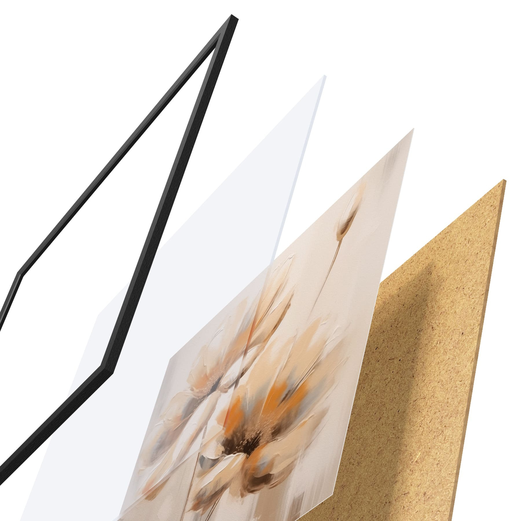 Plakāts sastāv no rāmja, pleksstikla, iespiestā attēla un skaidu plātnes pamatnes. Plakātu var uzreiz piekarināt pie sienas, pateicoties aizmugurē esošajiem stiprinājumiem.