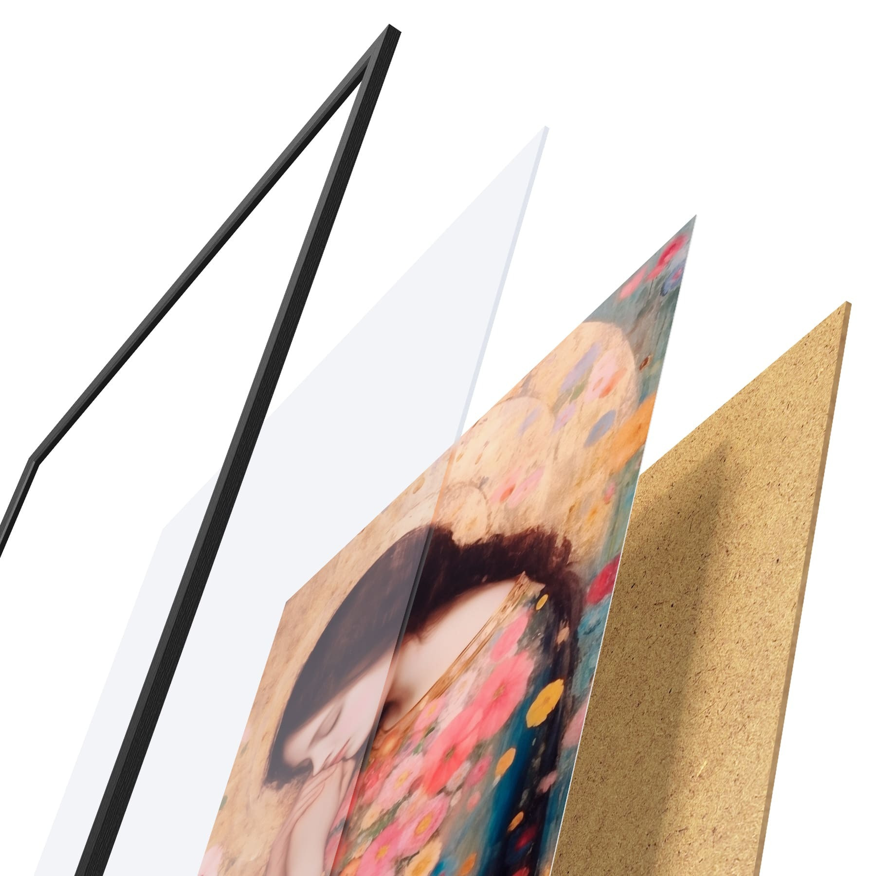 Plakāts sastāv no rāmja, pleksstikla, iespiestā attēla un skaidu plātnes pamatnes. Plakātu var uzreiz piekarināt pie sienas, pateicoties aizmugurē esošajiem stiprinājumiem.