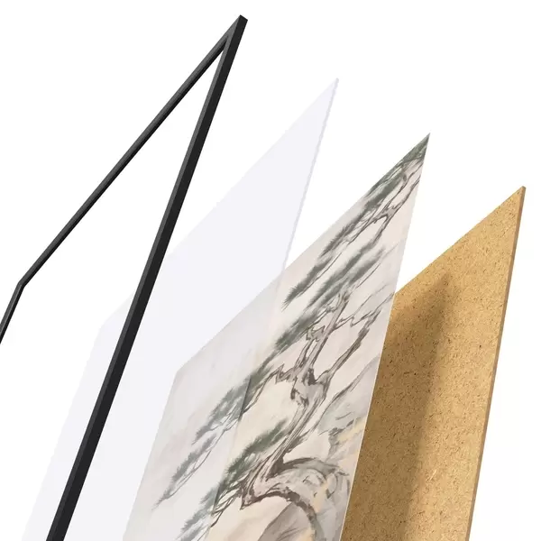 Plakāts sastāv no rāmja, pleksstikla, iespiestā attēla un skaidu plātnes pamatnes. Plakātu var uzreiz piekarināt pie sienas, pateicoties aizmugurē esošajiem stiprinājumiem.